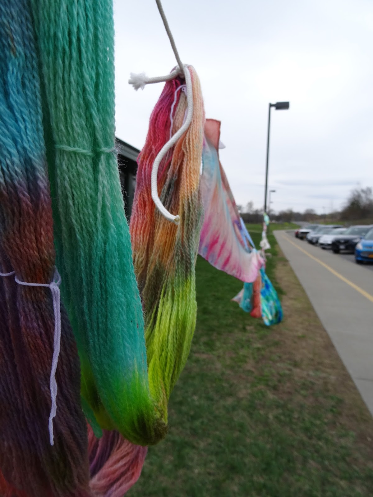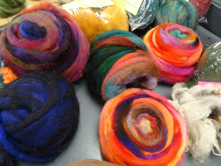 In the "wool room", people were making wet-felted flowers, and learning to spin batting (I think I'm saying that correctly, but I'm really not sure). And also, dyeing silk scarves! (I admit to sneaking in for a bit and dyeing a scarf or two...)