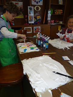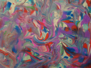 This process can also be done with acrylic paint, but the final product will be stiff, whereas the final product with tempera is quite soft. I have also used this process with fabric dyes to paint a shirt.